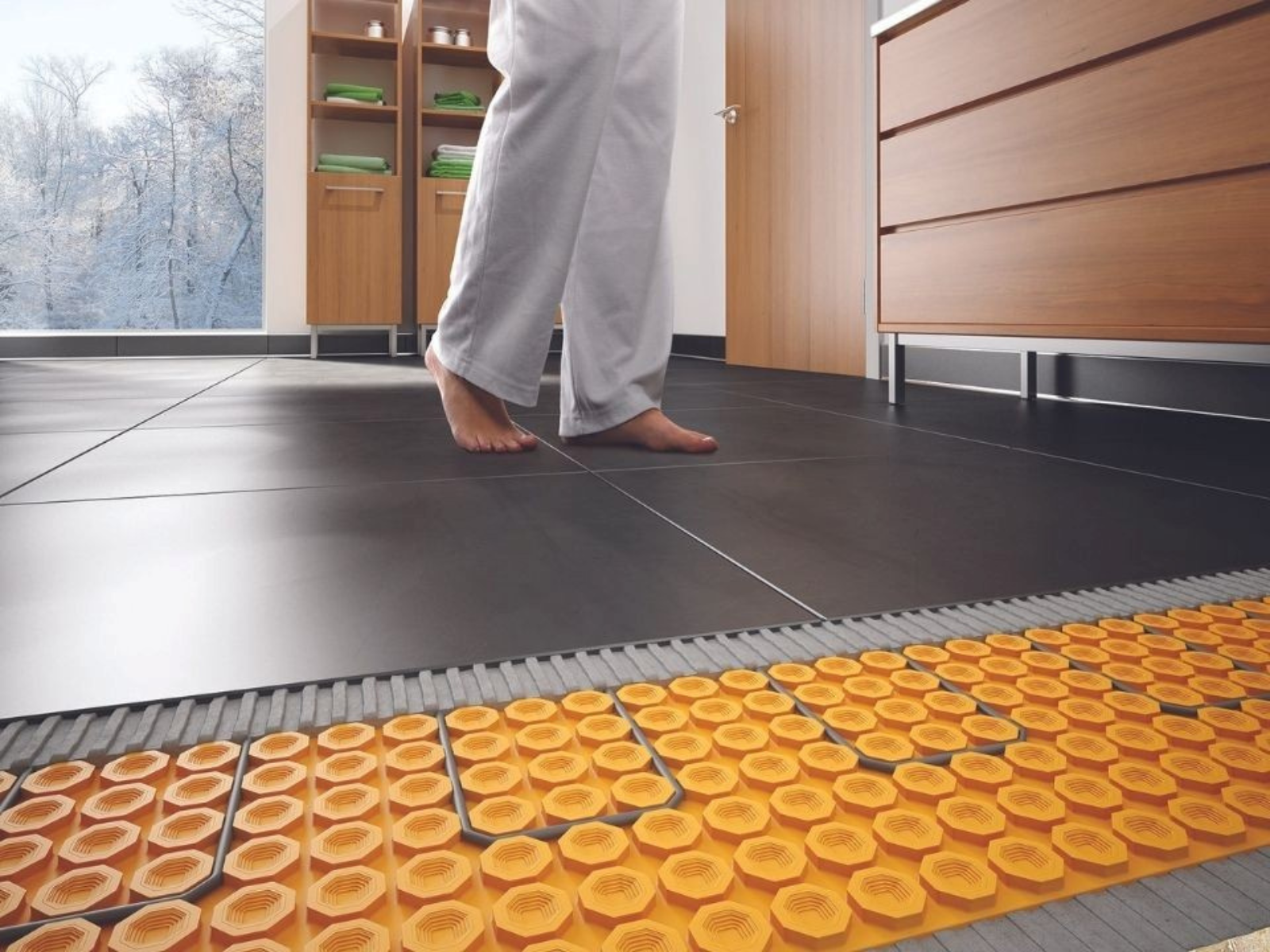 Un système de chauffage confortable et efficace, intégré directement au sol, qui diffuse une chaleur homogène et agréable dans toute la pièce.